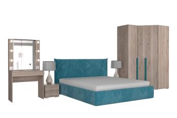 - Практичная комплектация – включает шкафы, тумбы и туалетный столик с зеркалом