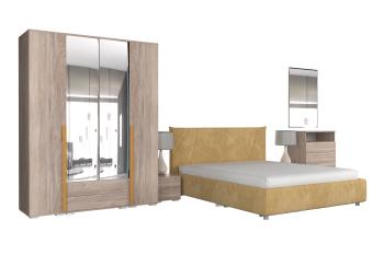 - Особенности: включает зеркало, тумбы, кровать, шкафы и комод