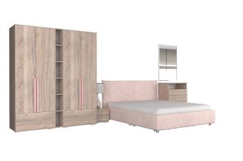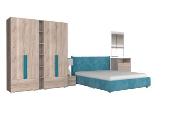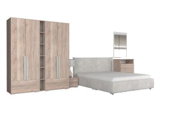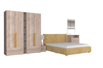 - Включает все необходимые элементы спальни: от кровати до систем хранения
