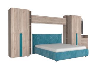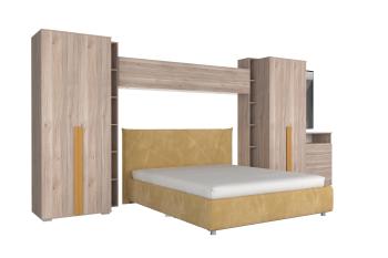 - Особенности: включает зеркало, кровать, шкафы, стеллажи и комод
