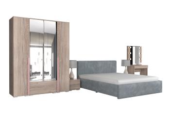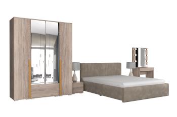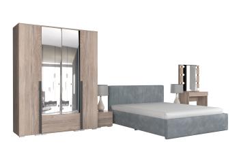 - Особенности: включает зеркало, туалетный столик, кровать и шкафы
