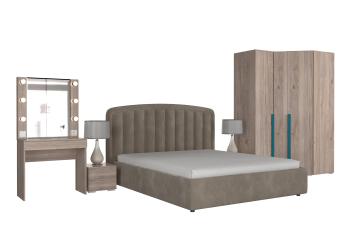 - Особенности: включает зеркало, тумбы, туалетный столик, кровать и шкафы