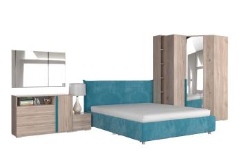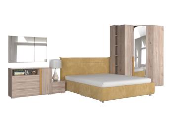 - Особенности: включает зеркало, тумбу, кровать, шкаф, стеллаж и комод