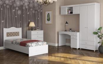 Кровать 900 с настилом и мягким элементом Италия ИТ-10 + ИТ-10А белое дерево