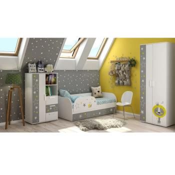 Спокойствие и безмятежность, детская непосредственность и мечтательность – все это отражено в нанесенном на фасадную часть коллекции “Трио. Звездное детство” рисунке в стиле дудлинг. Приглушенный светло-серый фоновый тон фасадов украшен россыпью звезд, отражающихся в счастливых детских глазах.Матовая поверхность створок великолепно оттеняет глянцевое покрытие белых ручек классической прямоугольной формы.