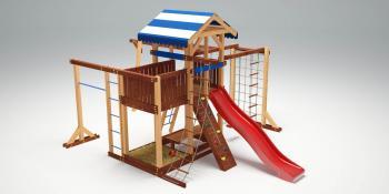 Детская площадка Савушка-16 –это игровая башня(высота платформы 1500 мм), пластиковая горка, балкон, шторм-трап, качели, песочница, шведская стенка, альпинистская стенка, столик, сетка для лазанья, веревочная лестница, гимнастические кольца, рукоход и турник. Дополнительно есть удобные ступеньки и защитные бортики. На такой площадке одновременно и вполне комфортно, смогут играть несколько детей. Конструкция рассчитана для детей в возрасте от трех лет. Площадка очень безопасно продумана, а древесина качественно отшлифована и покрыта лаком, чтобы ребенок не получил занозу. Все материалы имеют необходимые сертификаты качества.