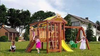 Детская площадка Савушка-Baby – 11 (Play) – это игровой домик с крышей, горка пластиковая, балкон с игровыми элементами, шведская стенка, сетка-лазалка, турник металлический, кольца гимнастические, скалодром, качельный модуль, лестница, руль, бинокль. Дополнительно есть удобные ступеньки и защитные бортики, а древесина качественно отшлифована и покрыта лаком, чтобы ребенок не получил занозу. Все для наиболее безопасной игры, ведь комплекс рассчитан для самых маленьких деток в возрасте от 1 года. Впечатляет и внешний вид комплекса, такое изделие станет украшением двора, или территории возле разнообразных заведений где обычно гуляют родители с детьми.