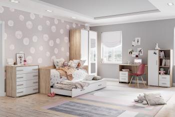 Мебель для детской из коллекции Бланка поможет Вам обустроить стильную и при этом функциональную комнату для Вашего ребенка. Письменный стол в сочетании с выкатной тумбой, надстройкой и стеллажом (по желаниию) обеспечат идеальное рабочее место для учебы и творчества. Во вместительных шкафах Вы с комфортом разместите всю одежду, белье, обувь и личные вещи ребенка. Из двух видов кроватей Бланка Вы сможете выбрать ту, на которой ребенок сможет с комфортом отдыхать и восстанавливаться для новых свершений. Навесные полки станут местом для книг, памятных вещей и предметов декора: картин, статуэток, цветов.