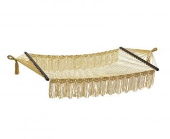 Гамак №6м выполнен из синтетической полиамидной нити, в четыре каната. Поэтому он выдерживает нагрузку до 150 килограмм. Размеры гамака: длина – 275 сантиметров, длина полотна – 185 сантиметров, ширина – 120 сантиметров.