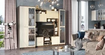 Гостиную «Люкс» можно назвать настоящим символом утонченности и элегантности. Изделие обладает лаконичным стилем и сможет сочетаться со множеством современных интерьеров. Вы сможете разместить все необходимые вещи, включая аудио- и видеотехнику. Уникальной особенностью данной гостиной является возможность декорирования фасадов зеркалами.