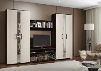 Шкафы имеют универсальное наполнение ( полки + штанга металлическая для одежды), шкафы украшены бронзовым стеклом с пескоструйной обработкой.
