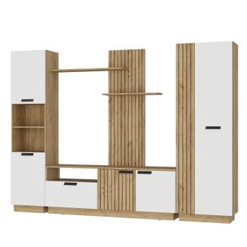 Изготовленная из ЛДСП, гостиная обладает прочностью и долговечностью. Ниша под телевизор имеет размеры 1550х810х334 мм, что позволяет разместить технику различных размеров. Стильные ручки из АБС-пластика длиной 128 мм добавляют современный акцент.