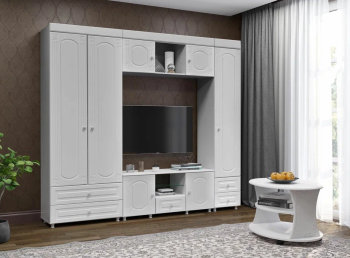 Гостиная Афина-1 – яркий и современный комплект для гостиной. Отличительная особенность серии – это фасады из высококачественной МДФ с объемным узором.