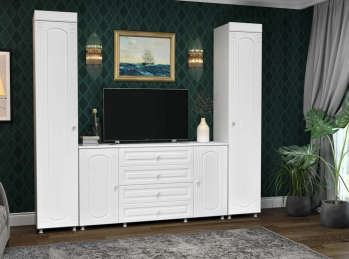 Гостиная Афина-6 – яркий и современный комплект для гостиной. Отличительная особенность серии – это фасады из высококачественной МДФ с объемным узором.