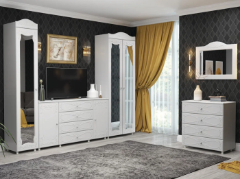 Гостиная Италия 4 – яркий и современный комплект для гостиной. Отличительная особенность серии – это фасады из высококачественной МДФ с объемным узором.