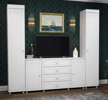 Гостиная Италия 6 – яркий и современный комплект для гостиной. Отличительная особенность серии – это фасады из высококачественной МДФ с объемным узором.