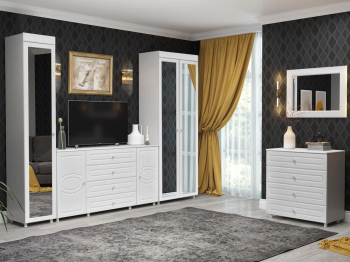 Гостиная Монако 4 – яркий и современный комплект для гостиной. Отличительная особенность серии – это фасады из высококачественной МДФ с объемным узором.