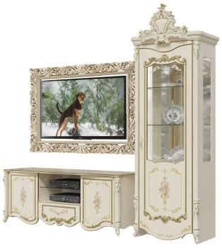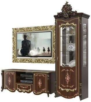 В комплектации № 2 гостиная Шейх состоит из солидной тумбы TV, резной рамки для TV и изящного шкафа-витрины 1-дверного правого. Продуманный до мелочей гарнитур позволит Вам сохранить в гостиной эксклюзивный дизайн коллекции Шейх.