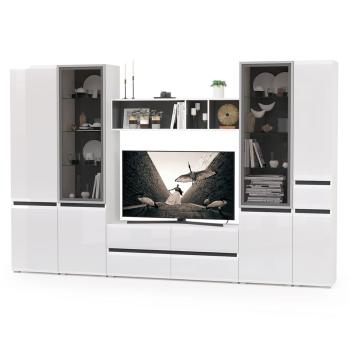 Гостиная Mobi Сидней № 28 – это современное решение для обустройства просторной гостиной. Комплект выполнен в элегантном бело-чёрном цветовом решении с глянцевыми фасадами из МДФ, что придаёт интерьеру лёгкость и визуально расширяет пространство.