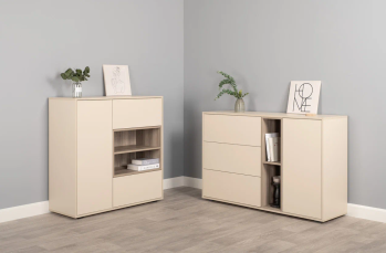 Каждый комод оснащён ящиками на скрытых направляющих с push-механизмом, а также распашной дверцей с доводчиком и системой открывания push to open. Регулируемые пластиковые опоры обеспечивают устойчивость и удобство на любых поверхностях. Универсальная сборка и уголки для крепления к стене делают установку простой и безопасной.