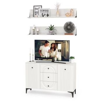 ТВ-тумба-комод Валенсия 13.309 от бренда Mobi – это современная и практичная мебель, которая идеально впишется в интерьер гостиной. Модель выполнена в элегантном белом цвете с эффектом шагрени, что придает ей благородный внешний вид.