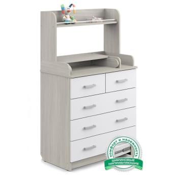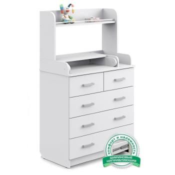 Комод Атон «Сириус-2» ЛДСП, оборудованный надстройкой с полкой – удобный и практичный комод с пеленальным столиком – незаменимый предмет для детской комнаты. Пеленальный столик с откидной крышкой не только помогает маме в переодевании ребенка, но при этом экономит пространство в помещении за счет удобного механизма складывания. 5 вместительных ящиков с лёгкостью выдвигаются и задвигаются на шариковых направляющих. На столешнице предусмотрено специальное место для предметов первой необходимости, чтобы было “все под рукой”!