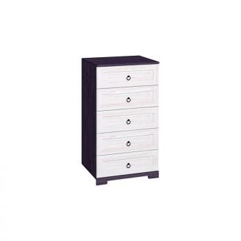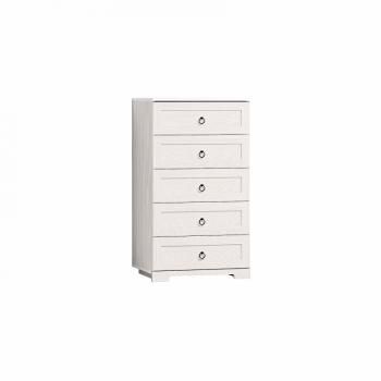 Высокий и узкий Комод экономит место в комнате без ущерба для вместительности. Особенностью комода является декоративный цоколь и металлические ручки-кольца в стиле Прованс. Ящики глубиной 16 см на шариковых направляющих полного выдвижения, что позволит максимально использовать их полезную площадь и обеспечивает им легкий монтаж.