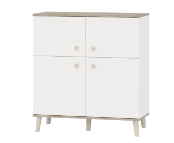 Комод 4-44906 Лайн с 4-мя распашными дверцами и полками за ними. Изделие установлено на высокие опоры.