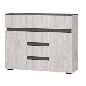 Комод выполнен из ЛДСП, что гарантирует его долговечность и надежность. Шариковые направляющие на ящиках обеспечивают плавное и легкое открытие, а накладные петли створок добавляют удобства в использовании.
