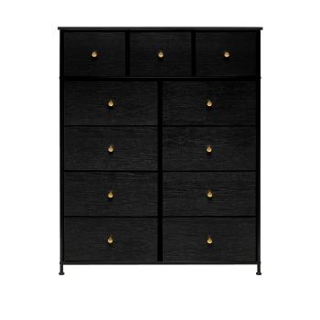 Комод Leset Линкс с 11 ящиками станет прекрасным решением для организации хранения в вашем доме. Каркас выполнен из профильной стальной трубы, что обеспечивает прочность и надежность. Полка и фасады ящиков изготовлены из МДФ, придавая комоду стильный вид. Ящики выполнены из нетканого материала спанбонд и картона, что делает их легкими и удобными. Размеры ящиков составляют 290×265×210 (3 штуки) и 450×265×210 (8 штук). Комод также может быть прикреплен к стене для дополнительной устойчивости и безопасности.