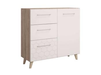 Комод Комфорт-S М8 малый Войтек — это гладкие матовые фасады МДФ, которые дополнены фасадами с графичной фрезеровкой «соты». Модель имеет широкие металлические ручки, петли с доводчиками для плавного открывания, бесшумные шариковые направляющие ящиков, деревянные опоры с регулировкой, ударопрочную кромку 2мм.