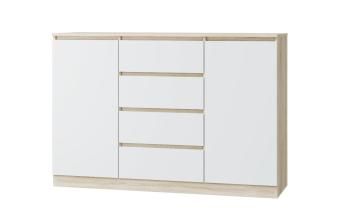 Вместительный комод Лори оснащен 4-мя выкатными ящиками на роликовых направляющих и закрытыми полками. Места хватит не только для одежды в сложенном виде и вещей, но и для книг, коробок и всего того, что должно храниться в порядке. Фасады открываются благодаря системе “push-to-open” – лицевая фурнитура отсутствует. Модель выполнена в скандинавском стиле в двух актуальных декорах на выбор.
