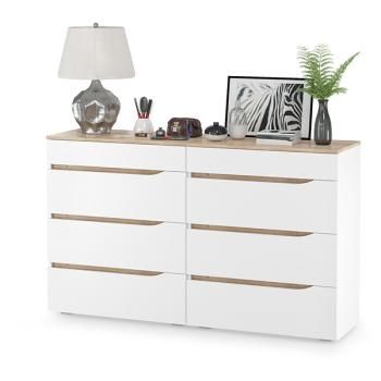 Комод Mobi Муссон 13.97 – это идеальное сочетание современного дизайна, практичности и высокого качества. Модель выполнена в элегантном белом цвете с эффектными вставками под дуб эндгрейн, что делает её универсальным решением для любого интерьера.