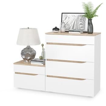 Комплект из комода и тумбы Mobi Муссон 13.97 + 16.03 – это идеальное сочетание современного дизайна и практичности. Набор выполнен в элегантном цветовом решении: белый корпус с декором под дуб эндгрейн, что делает его универсальным для любого интерьера.
