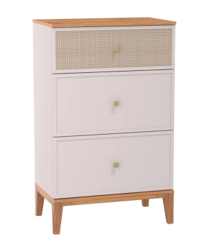 Комод 60.04 “Бора” с 3-мя выдвижными ящиками. Изделие установлено на высокие пластиковые опоры. Направляющие ящиков: Шариковые, полного выдвижения.