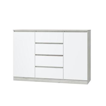 Комод с дверцами и ящиками MLK Лори — это современное и практичное дополнение для вашего интерьера. Он обладает четырьмя выдвижными ящиками на роликовых направляющих и закрытыми полками, что позволяет разместить не только одежду и вещи, но и книги, коробки и другие предметы, которые нужно держать в порядке. Фасады открываются благодаря системе “push-to-open”, что устраняет необходимость в лицевой фурнитуре и придаёт комоду современный облик. Изготовленный в скандинавском стиле, комод представлен в двух популярных декорах. Корпус выполнен из ЛДСП толщиной 16 мм в оттенке “дуб серый U2169”, с кромочным материалом “ясень Анкор серый”. Фасады из белого ЛДСП подчёркивают изящество и минимализм дизайна.