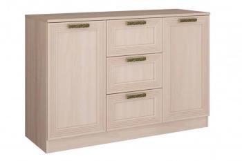 Комод выполнен в приятном цветовом сочетании "Ясень шимо светлый/Лён" и украшен изящными резными элементами. Плавные линии фасадов придают мебели особый шарм, позволяя ей органично вписаться в современные интерьеры.
