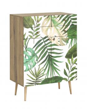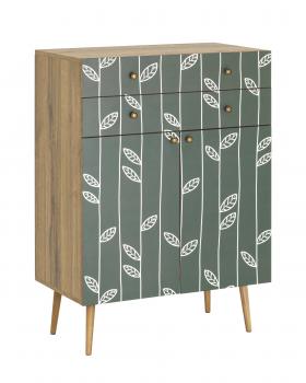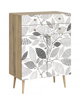Фасады ящиков украшены принтом в спокойной гамме. Принт на фасады наносится принтером специальными УФ-чернилами. Под воздействием УФ-излучения они образуют на поверхности запечатываемого материала эластичную пленку, обладающую высокой стойкостью к воздействию солнечного света, а также погодных, механических и других факторов. Высокая эластичность таких чернил гарантирует отсутствие растрескивания и осыпания напечатанного изображения.
