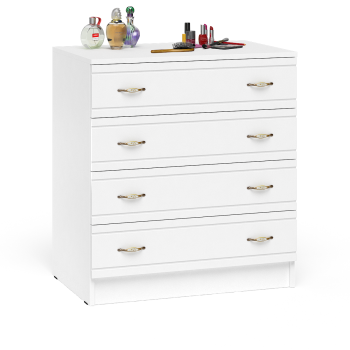 Комод Елена. Цвет – корпус белый/фасад мдф белый глянец. Размер (ШхГхВ) 80х51х88 см. Нарядный, высокий комод с четырьмя выдвижными ящиками – порядок и великолепие Вашей спальни!