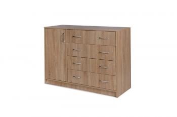 Комод КМ-2 (Вентал) практичный и вместительный. В нём можно удобно хранить большое количество вещей. У него есть 4 больших выдвижных ящика и шкафчик с полочками. Комод превосходно дополнит интерьер гостиной или спальни. Он имеет продуманную конструкцию, благодаря которой его можно будет расположить даже в небольшом помещении.
