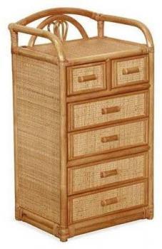 Комод Vinotti выполнен из ротанга. Такой материал не выцветает, он надежный, устойчивый и натуральный. Он не требует ухода специальными средствами, будет достаточно протирать ветошью из микрофибры, хорошо переносит перепады температур и высокую влажность.