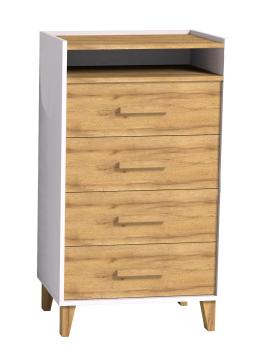 Высокий комод Айрис выполнен в единой с коллекцией стилистике и станет не только местом для хранения вещей, но и настоящим украшением интерьера Вашей спальни. Имеет четыре ящика на шариковых направляющих полного, плавного и бесшумного выдвижения, открытую нишу и тонкие деревянные ножки. Максимальная нагрузка на каждый ящик – 10 кг. Ручки трапециевидной формы в тон фасада изготовлены из массива дерева, приятны на ощупь и удобны при ежедневной эксплуатации.