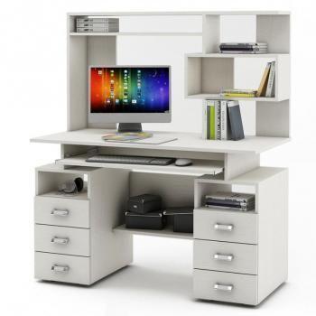 Классический Компьютерный стол MF Владимир Имидж-45 с надстройкой является бюджетным вариантом. Он выполнен из ДСП и покрыт ламинирующей