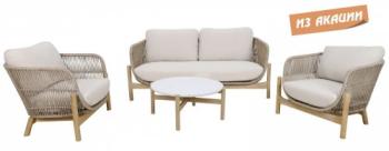 Talara – это современная коллекция садовой мебели из акации, выполненная в комбинации натурального веревочного плетения роуп, акации и светлых подушек. Цвет натуральной твердой древесины представляет собой натуральный цвет с мелкой текстурой, придающий древесине приятный теплый вид.