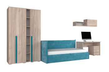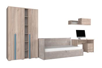 Мебель «Лайк К112» сочетает в себе эргономичность, качество и стильный дизайн. Угловая конструкция шкафа позволяет рационально использовать пространство комнаты, а кровать-тахта сэкономит место днем. В комплекте предусмотрены все необходимые элементы для комфортной жизни ребенка: место для сна, учебы и хранения вещей.