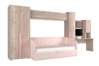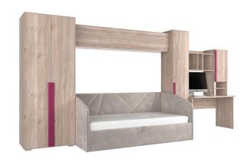 Комплект "Лайк К41" сочетает в себе эргономичность и стильный дизайн. Встроенный стол с надстройкой создает удобное рабочее место для занятий, а кровать-софа экономит пространство в комнате. Два навесных шкафа и два отдельно стоящих шкафа предоставляют достаточно места для хранения вещей и игрушек.