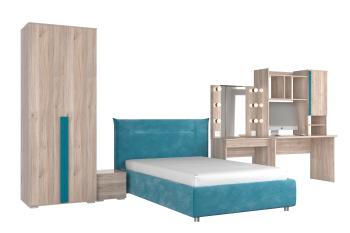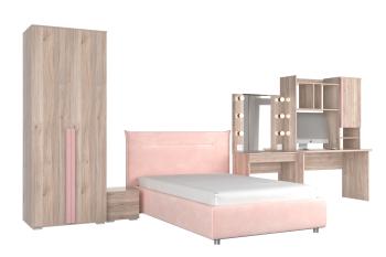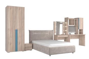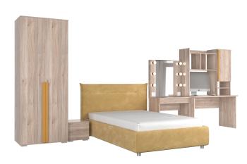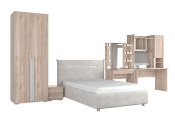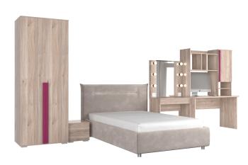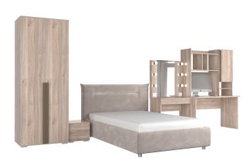 - Особенности: включает зеркало, тумбы, туалетный столик, кровать и шкаф