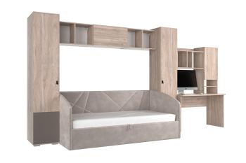 Комплект «Модерн К35» идеально подойдет для организации комфортного пространства ребенка. В нем предусмотрено все необходимое: удобная кровать-софа, просторные шкафы для хранения вещей, рабочий стол с надстройкой и полки для книг и игрушек.