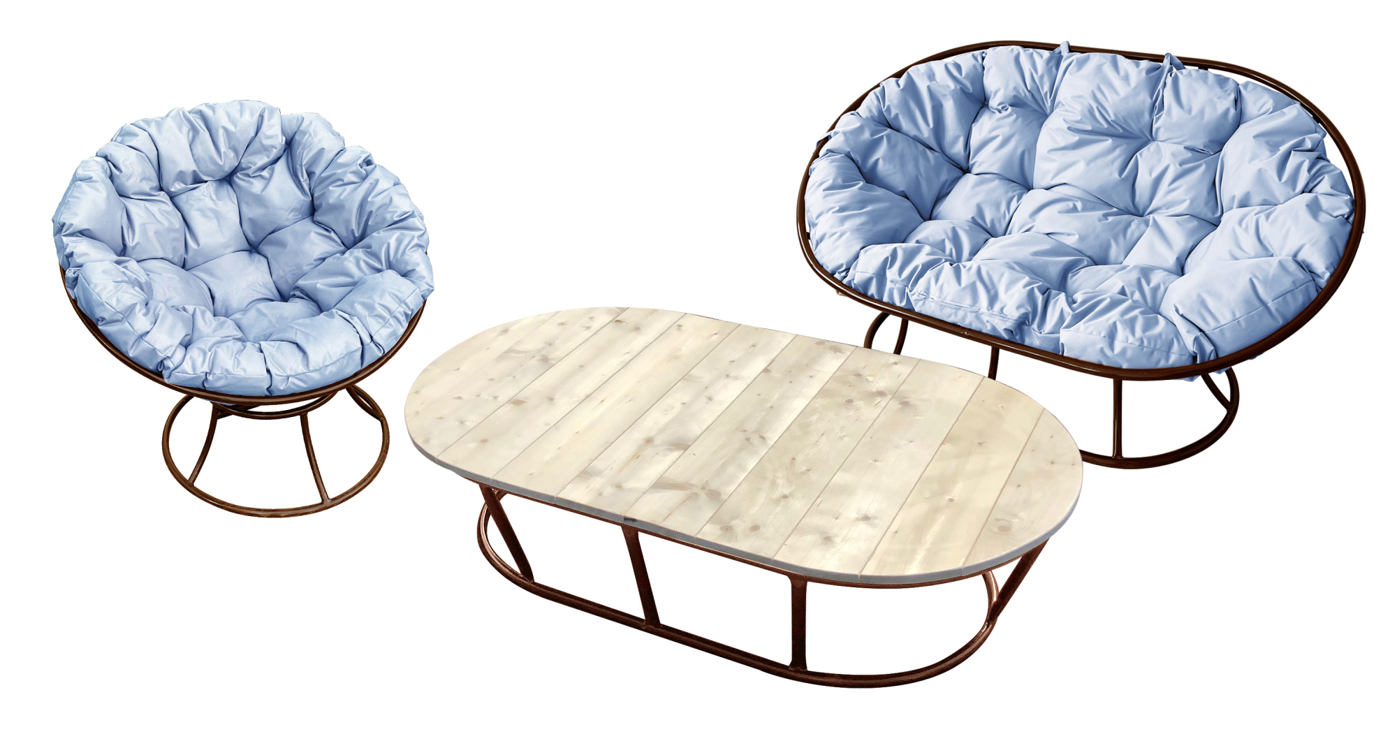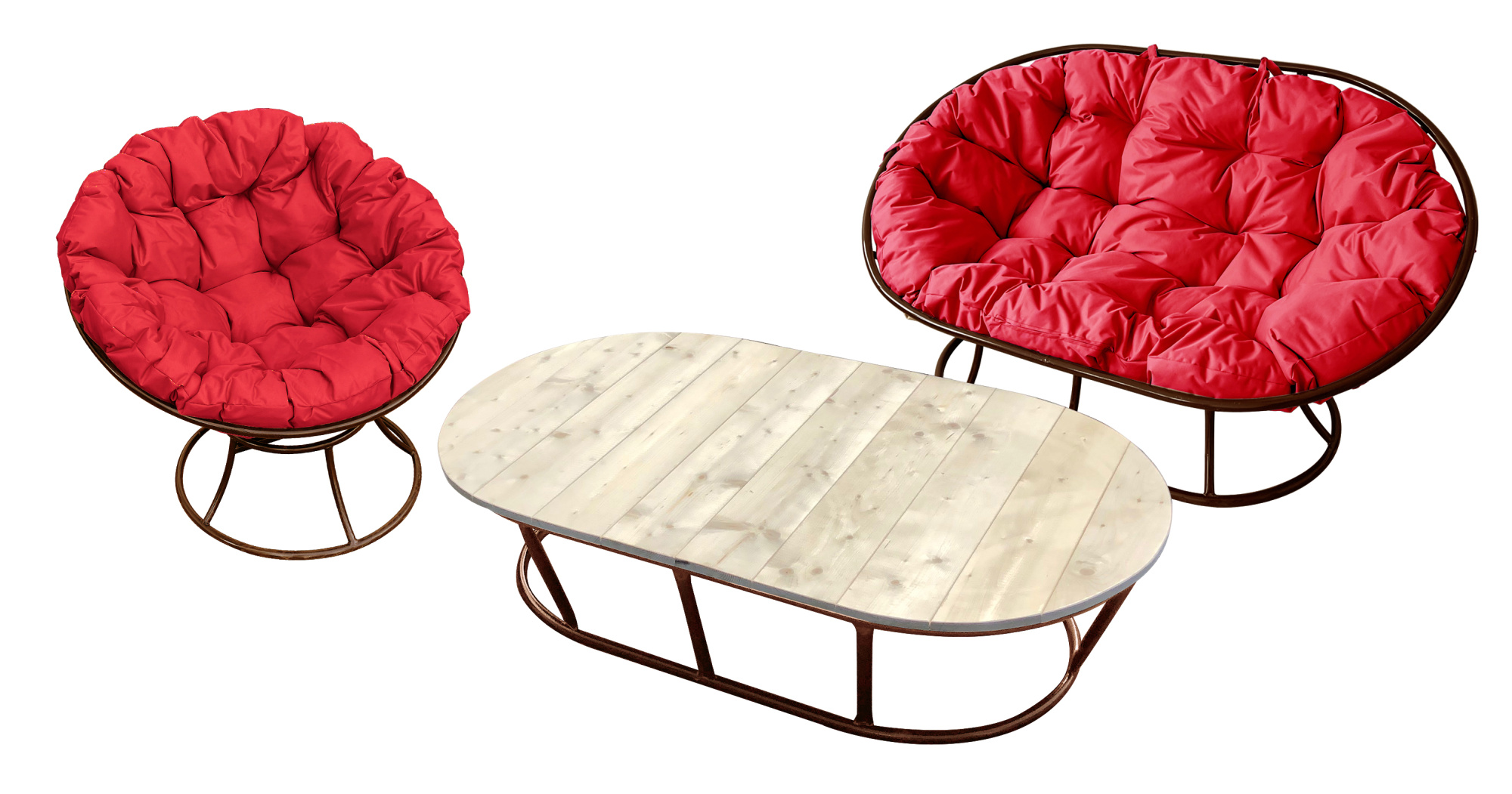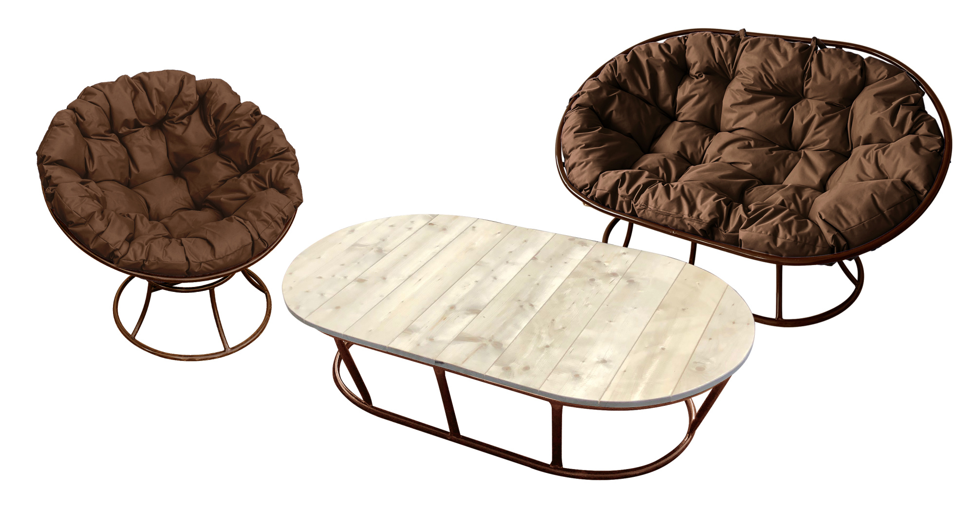 Материал изготовления у товара Комплект M-group МАМАСАН, ПАПАСАН и стол без ротанга коричневое – проверенный Металл. Конструкция имеет свои неоспоримые. Столешница выполнена из дерева, поставляется неокрашенной.достоинства.