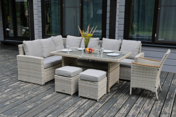 Купить комплект ROYAL FAMILY ZORRO WOOD в Москве — это идеальное решение для создания комфортного пространства на открытом воздухе. Этот комплект включает в себя все необходимое для отдыха: прямой диван (171×71×81 см), угловой диван (183×71×81 см), кресло (60×59×87 см), обеденный стол (150×90×70 см) и два пуфа (40×40×33 см).